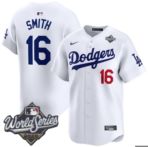 Home>MLB>2025 World Series>Los Angeles Dodgers>Men Los Angeles Dodgers 16 Will Smith 2025 World Series Cool Base Stitched Baseball Jersey White