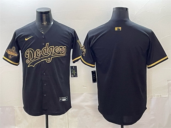 - Men's Los Angeles Dodgers Black Team Big Logo With Patch Cool Base Stitched Baseball Jersey1