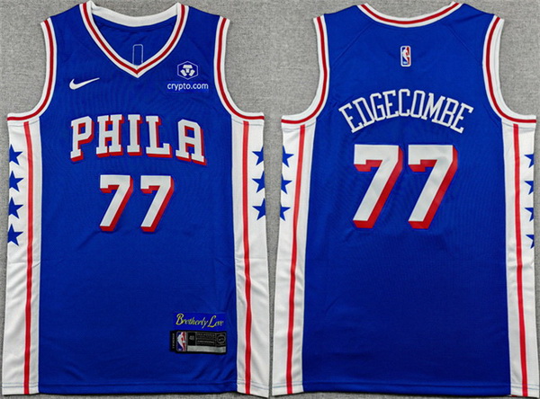 - Men Philadelphia 76ers 77 V J Edgecombe Royal 2025 Draft Icon Edition Stitched Jersey