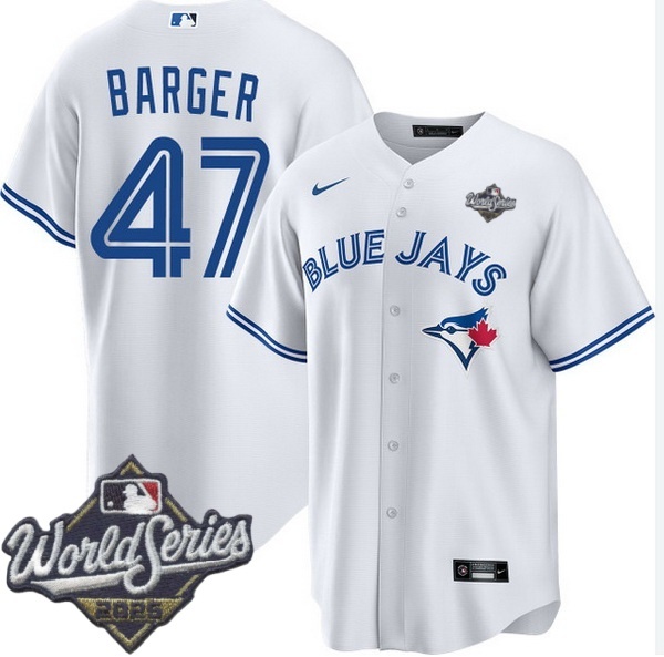 - Men Toronto Blue Jays 47 Addison Barger Cool Base Stitched Baseball Jersey Gray