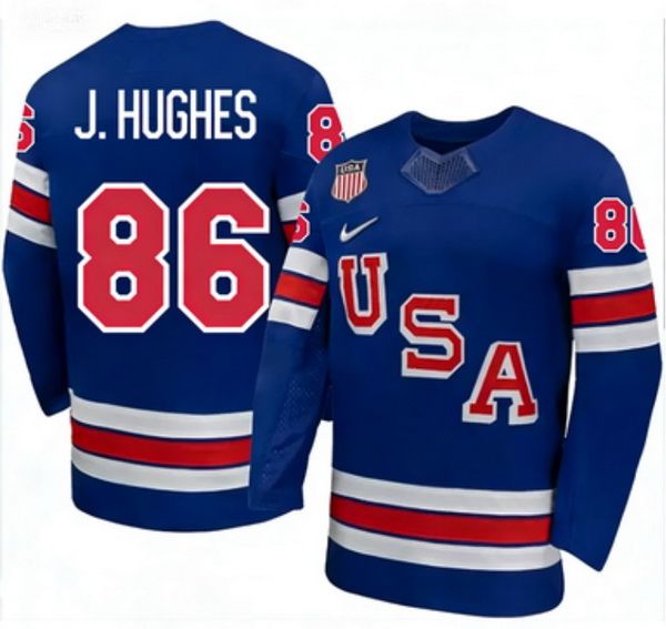 - Men USA 43 Quinn Hughes Royal 2025 2026 Stitched Jersey