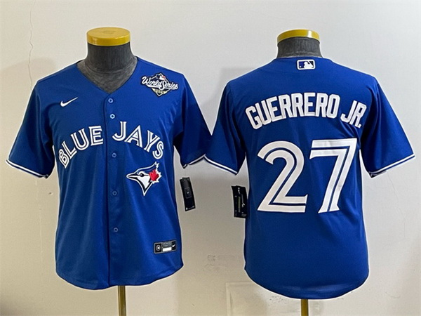 - Youth Toronto Blue Jays 27 Vladimir Guerrero Jr Replica Grey Road Baseball Jersey